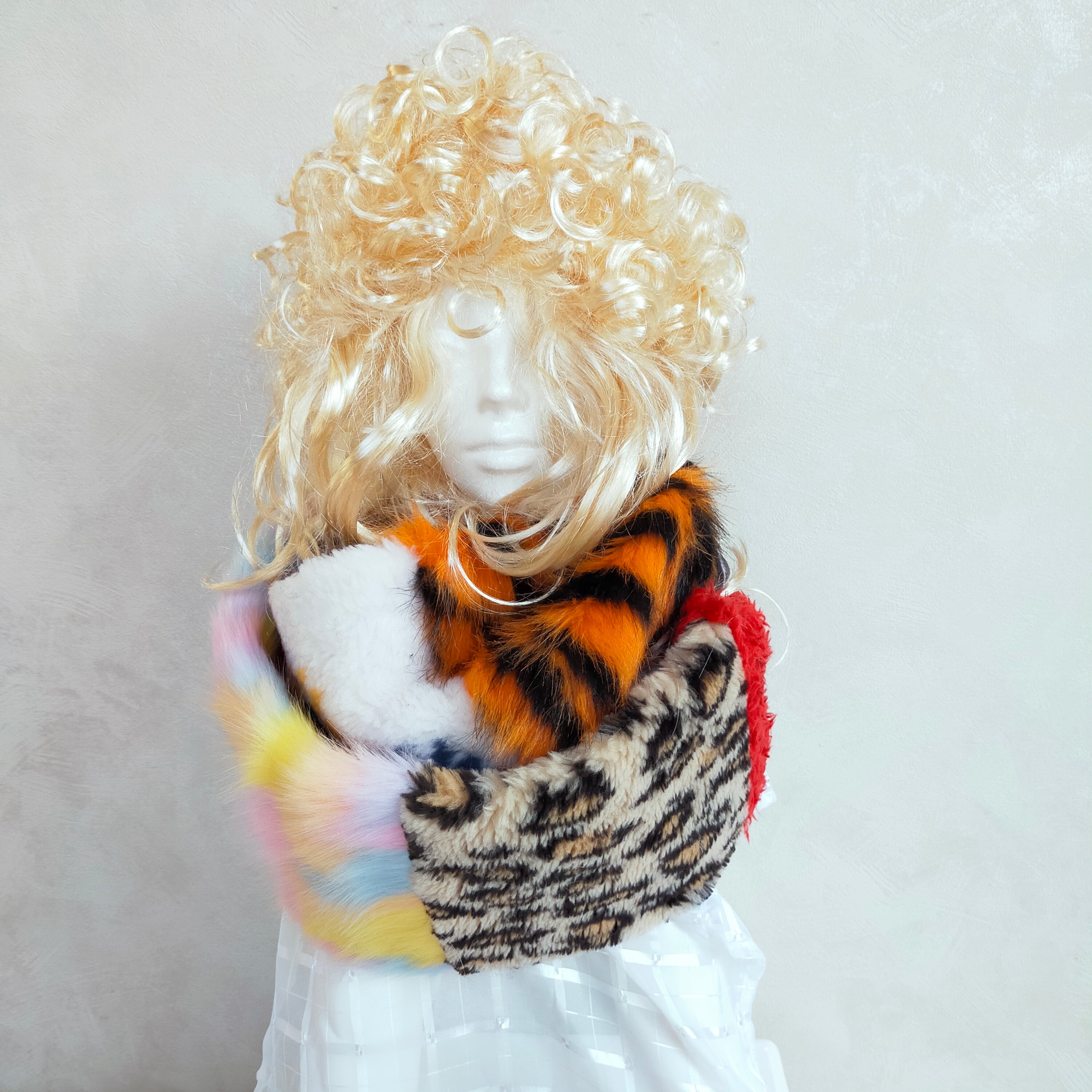フェイクファーやニットなどの異素材MIXのスヌードです。