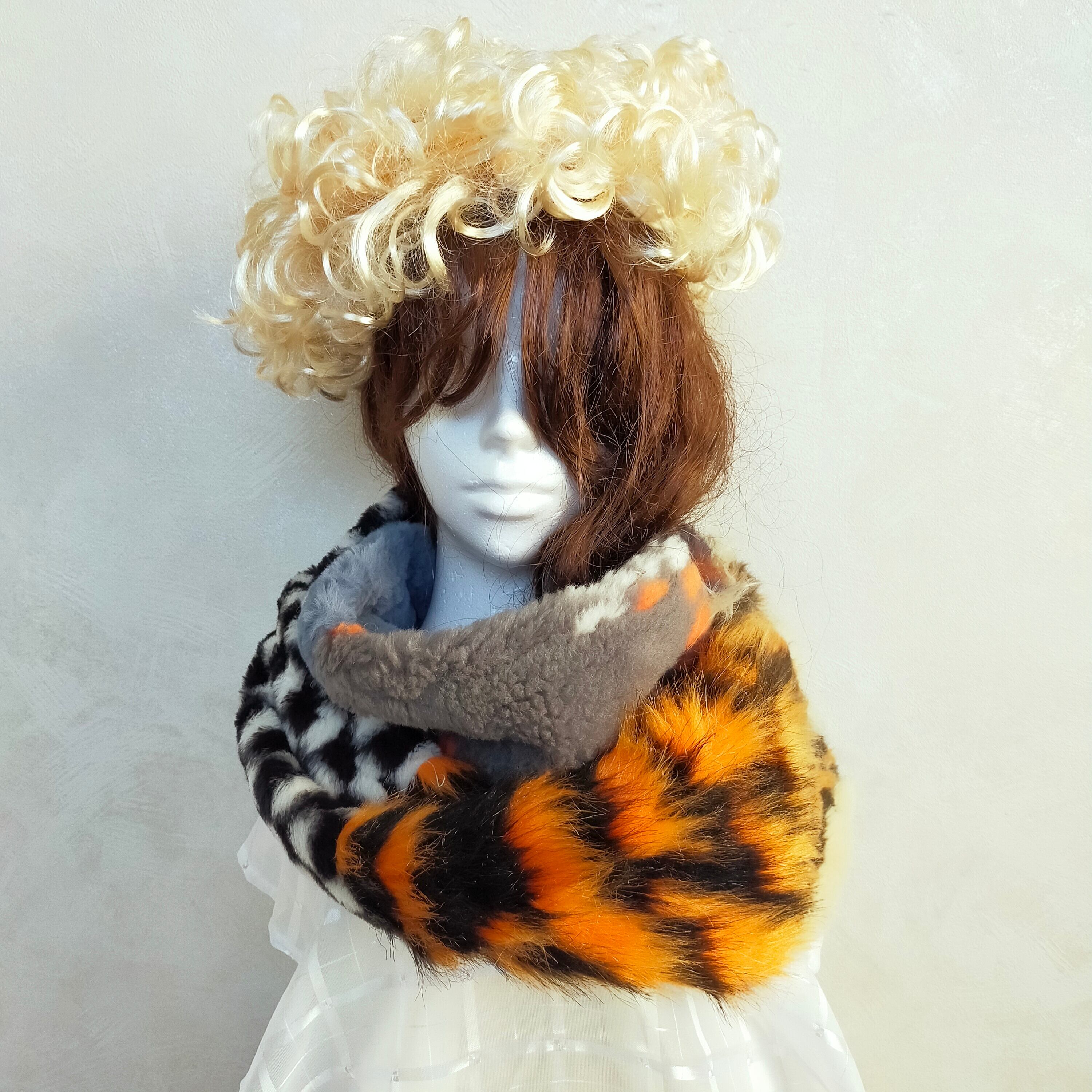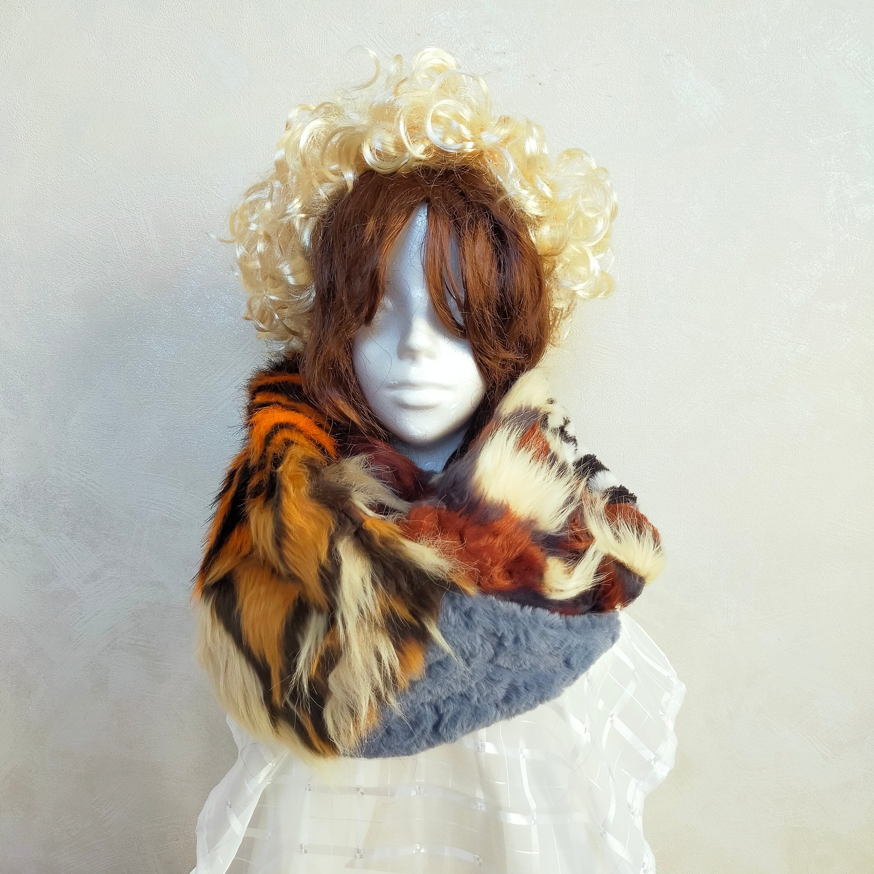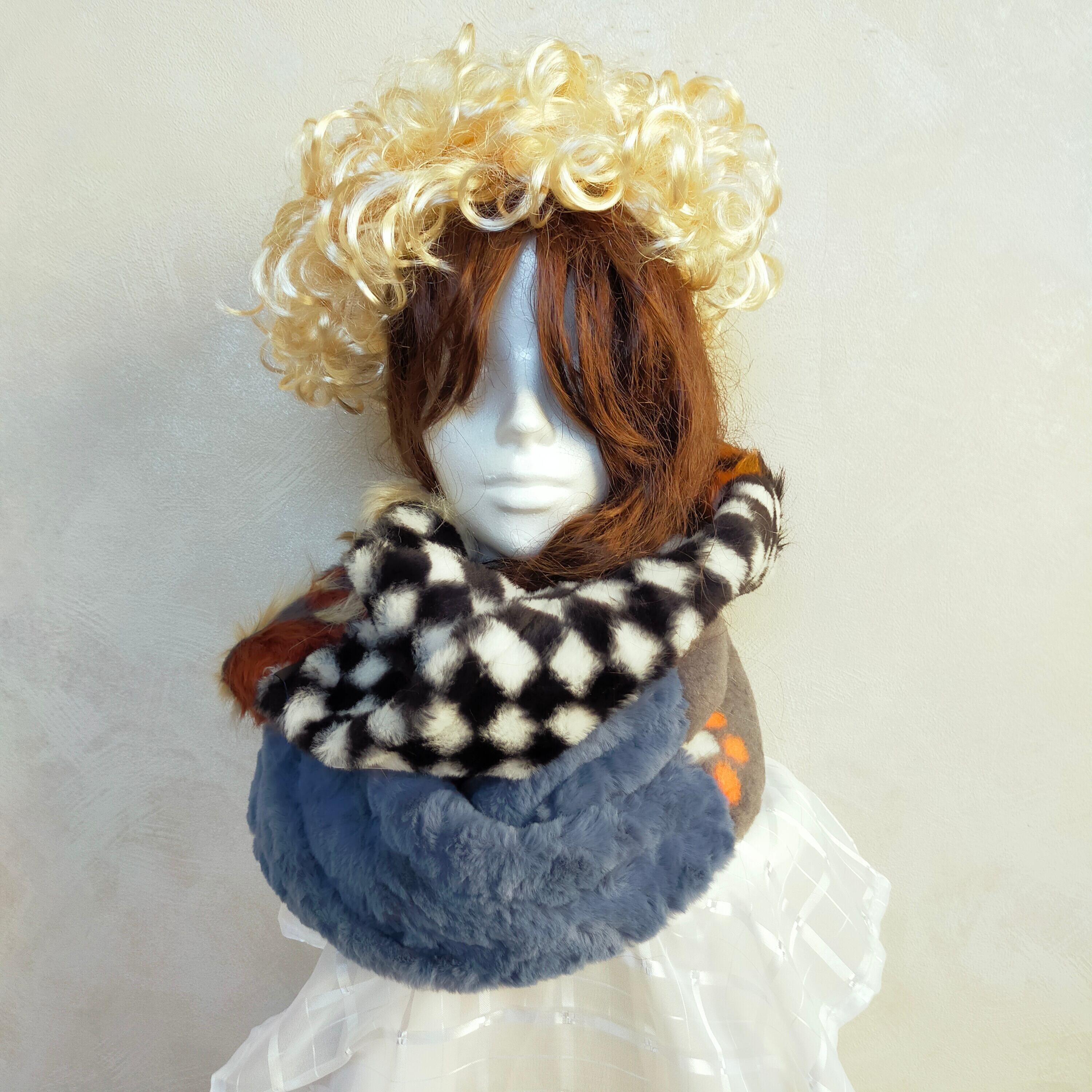 フェイクファーやニットなどの異素材MIXのスヌードです。