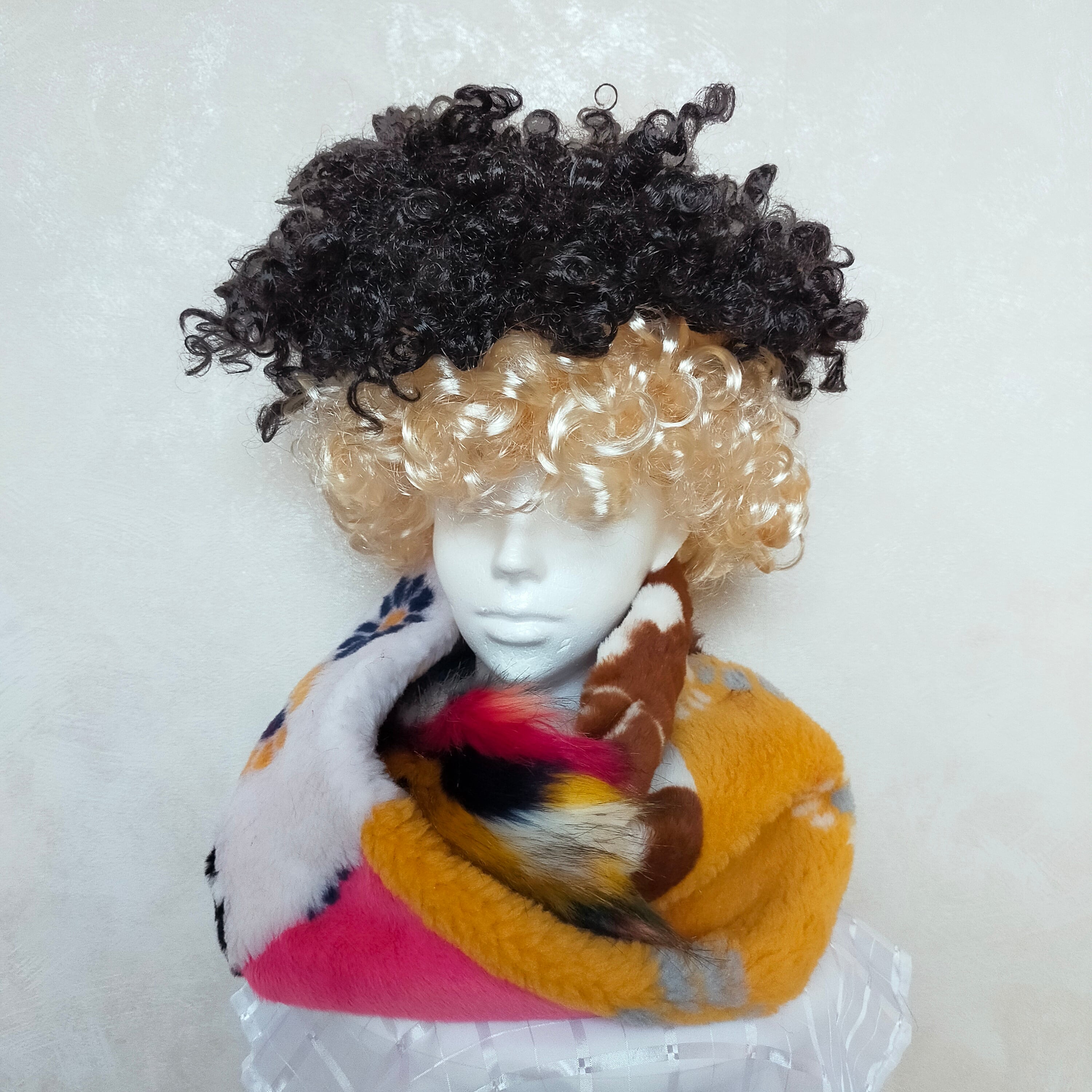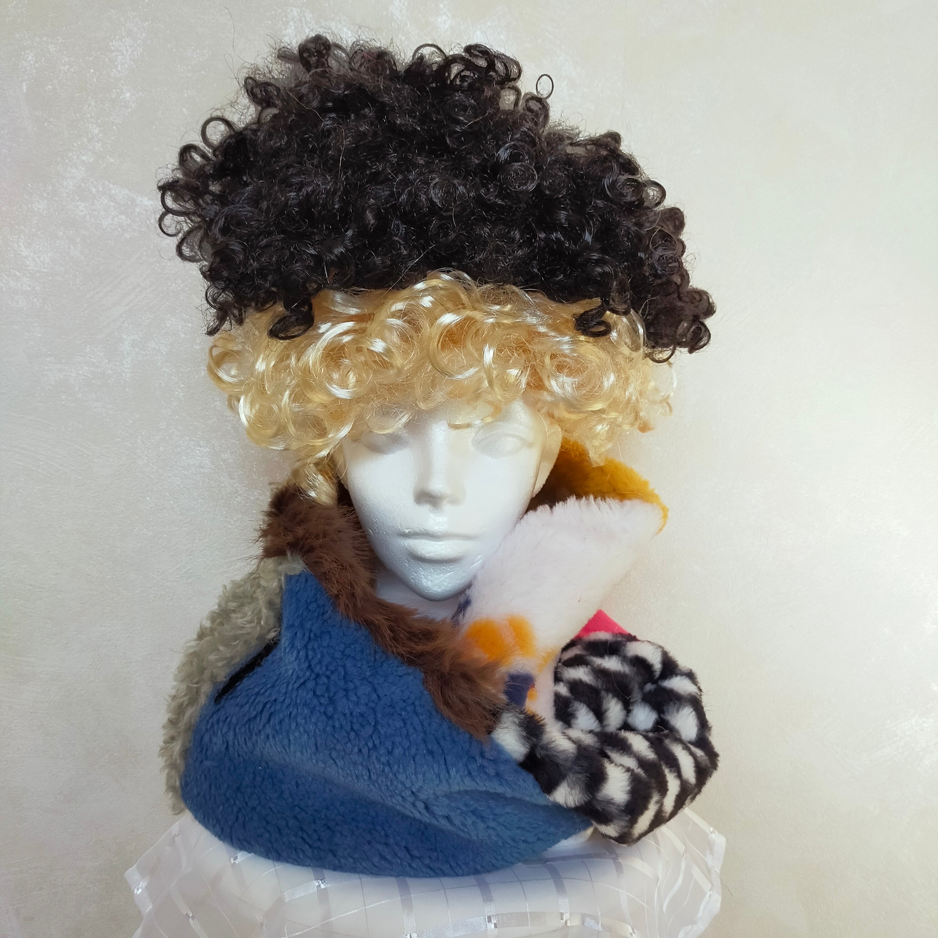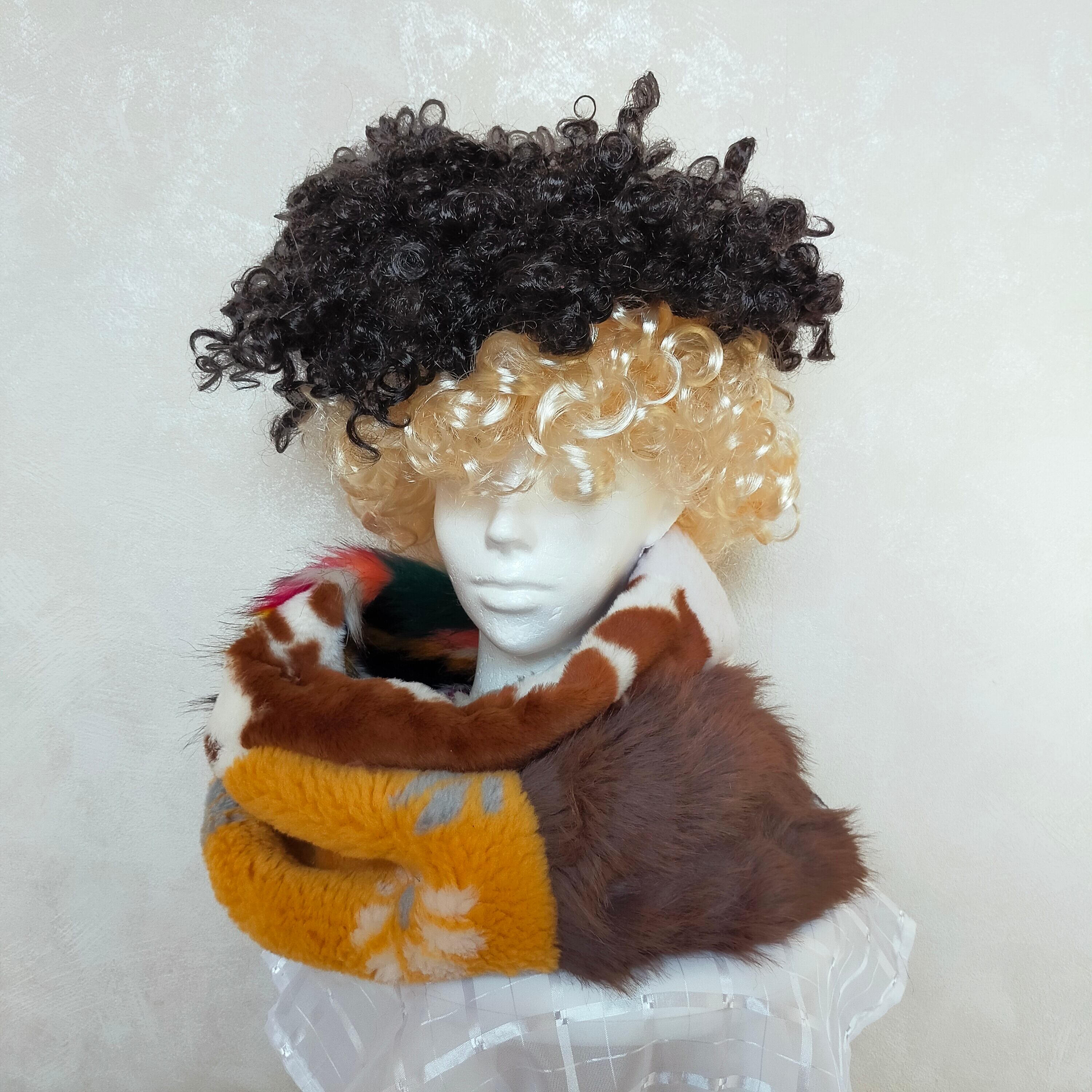 フェイクファーやニットなどの異素材MIXのネックウォーマーです。