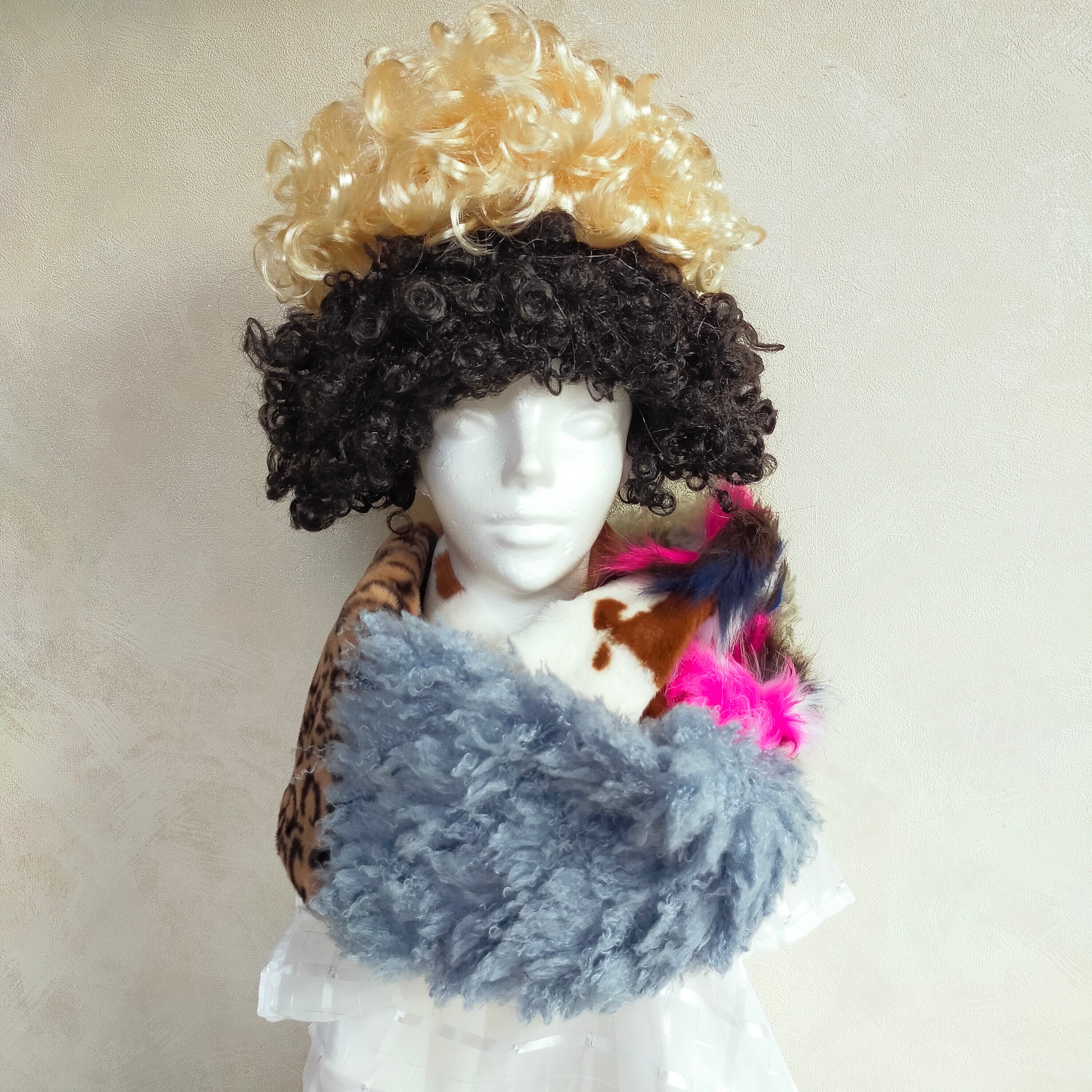 フェイクファーやニットなどの異素材MIXのスヌードです。