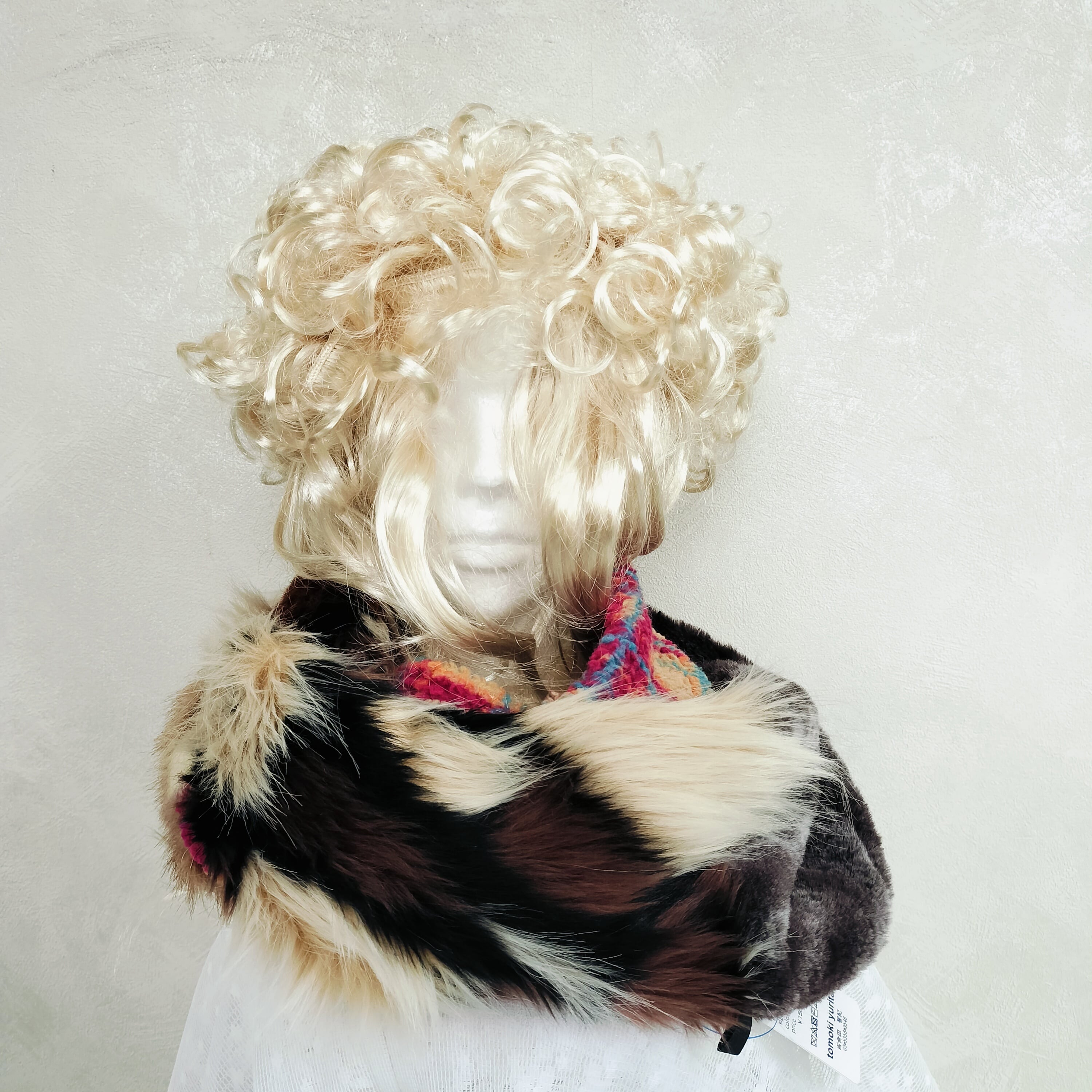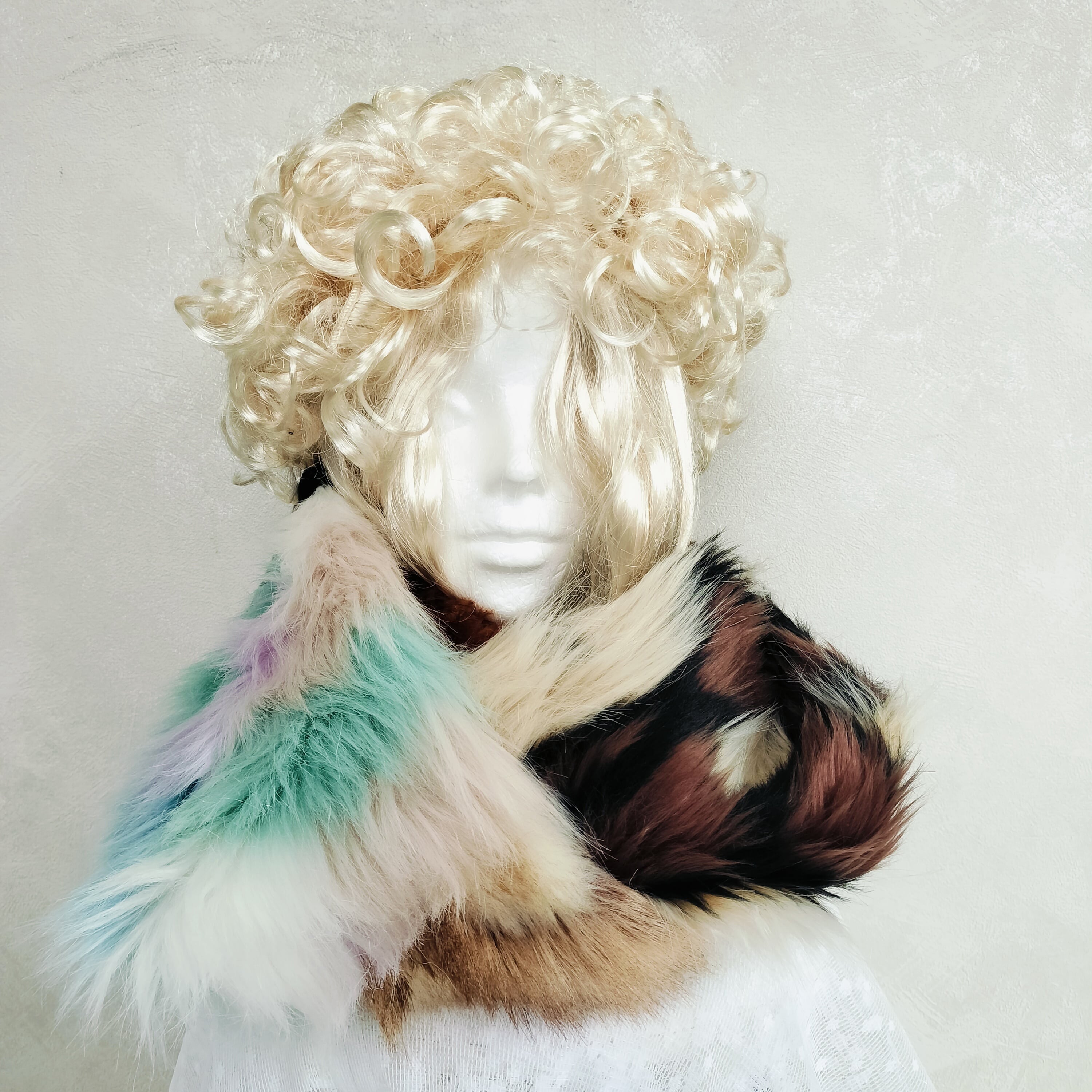 フェイクファーやニットなどの異素材MIXのスヌードです。
