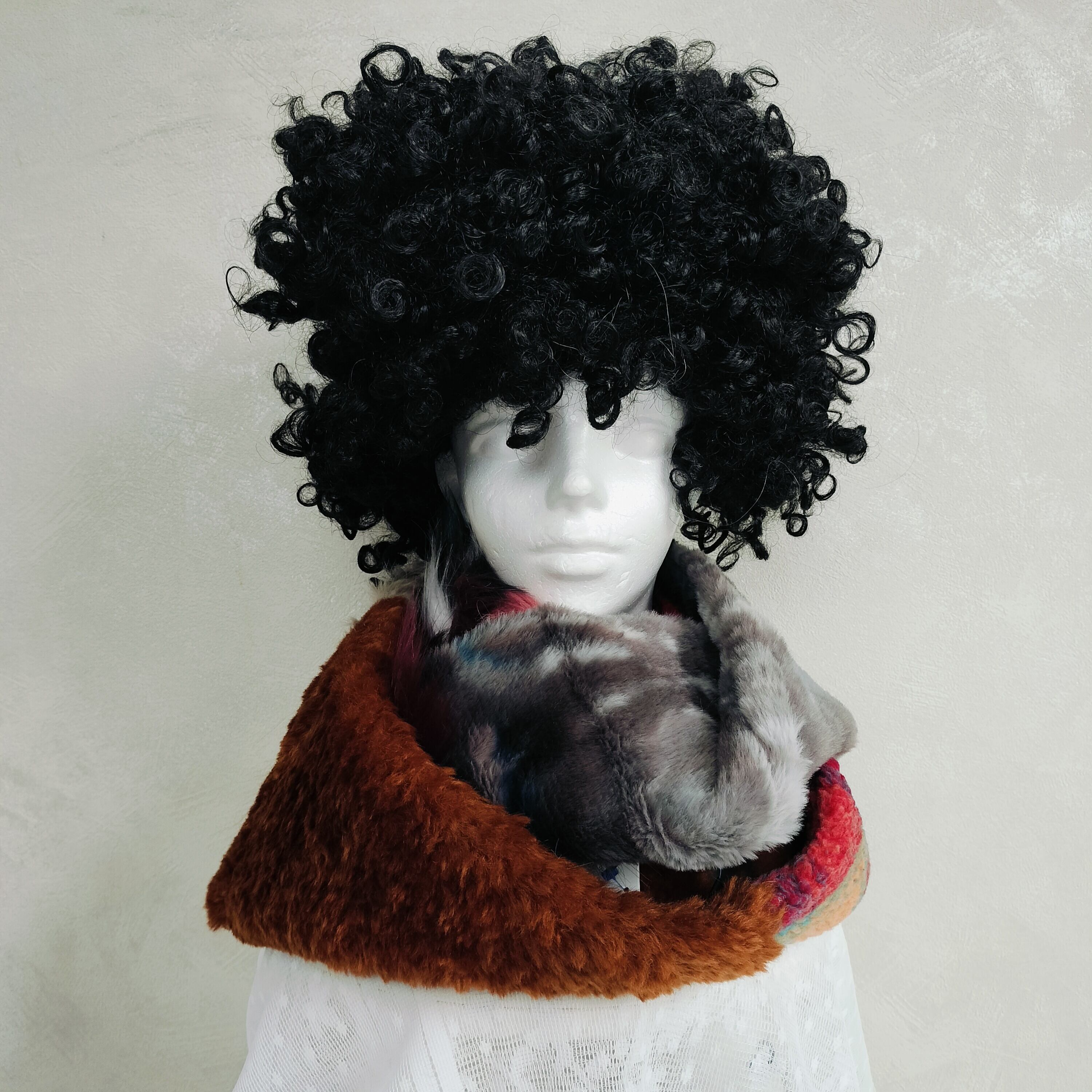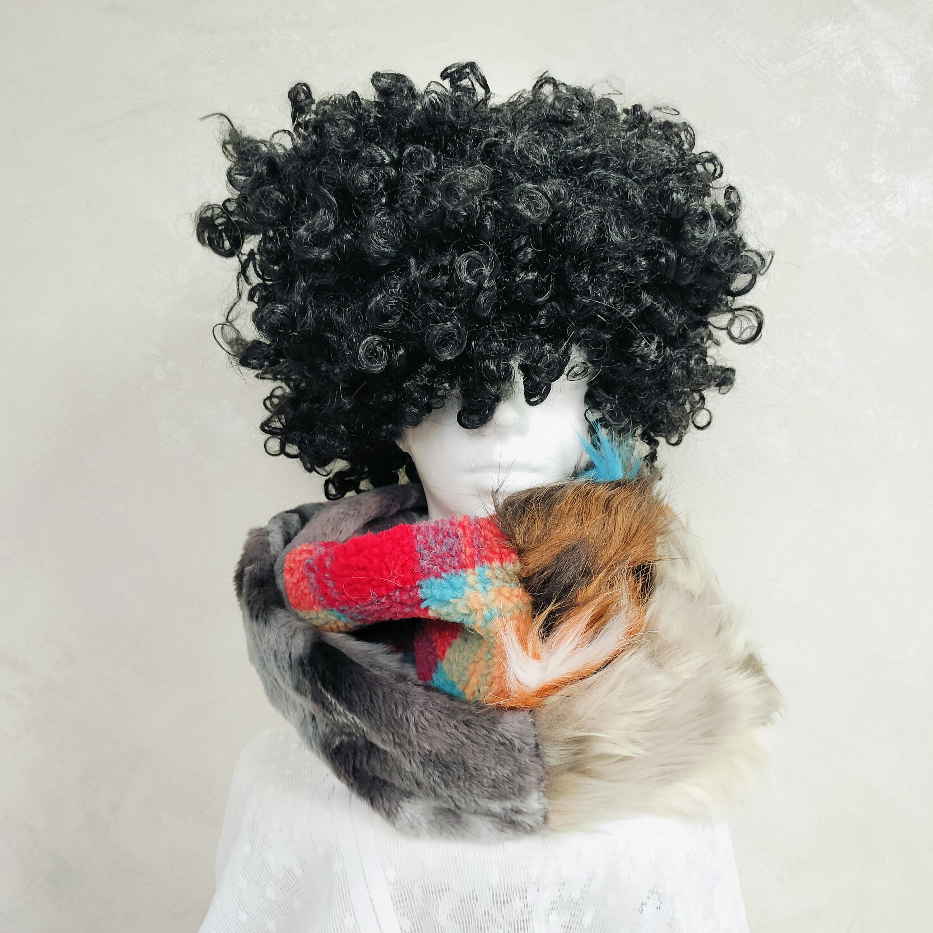 フェイクファーやニットなどの異素材MIXのスヌードです。