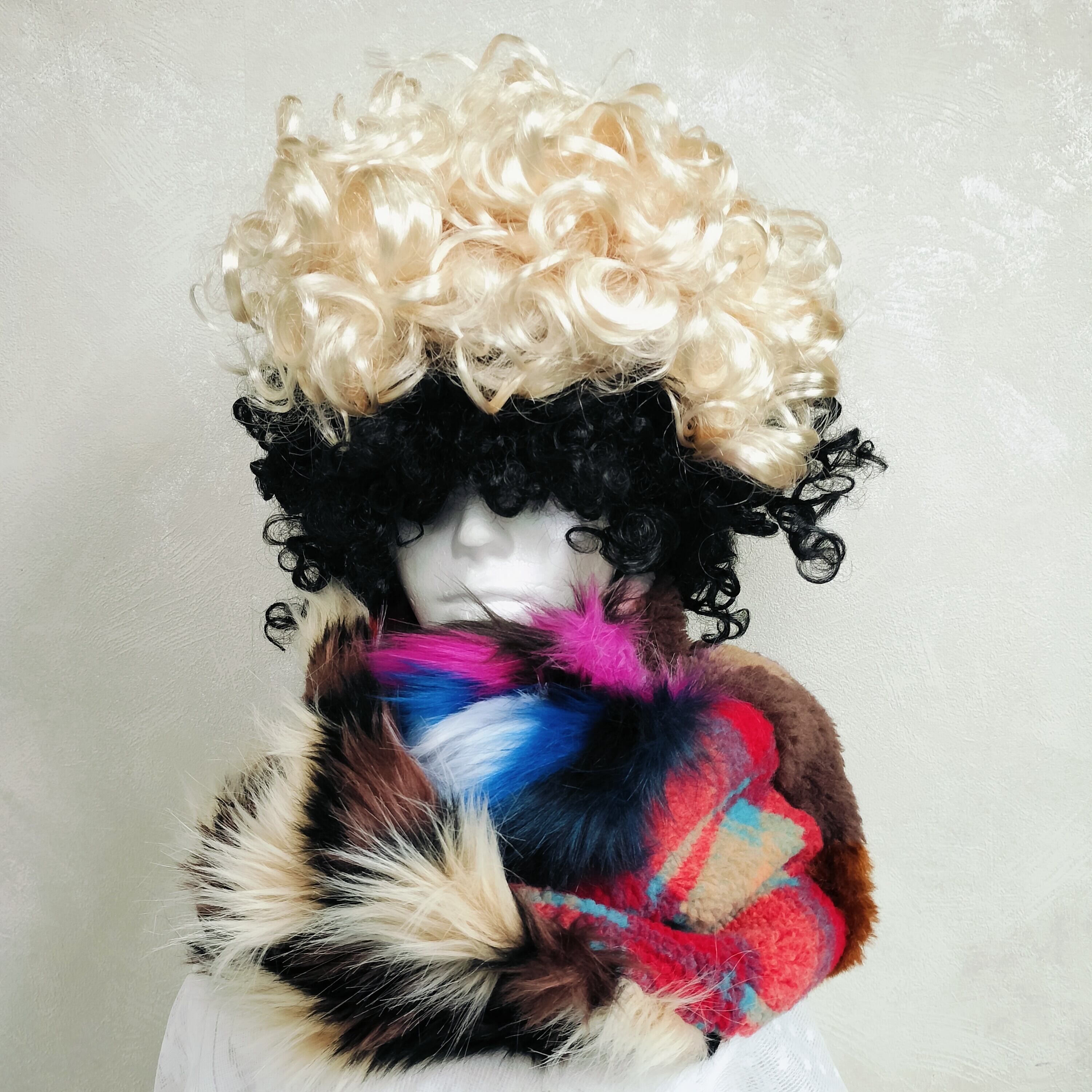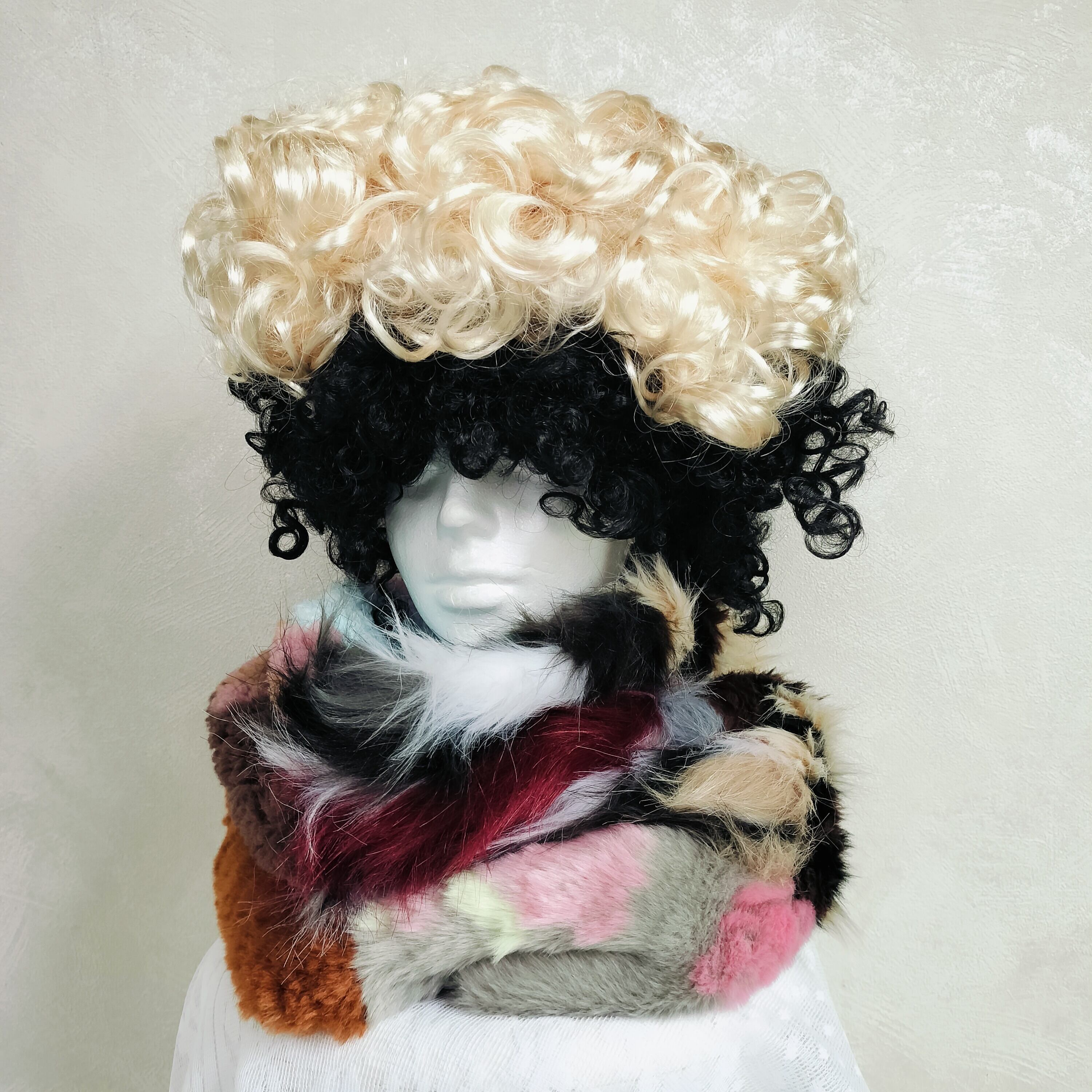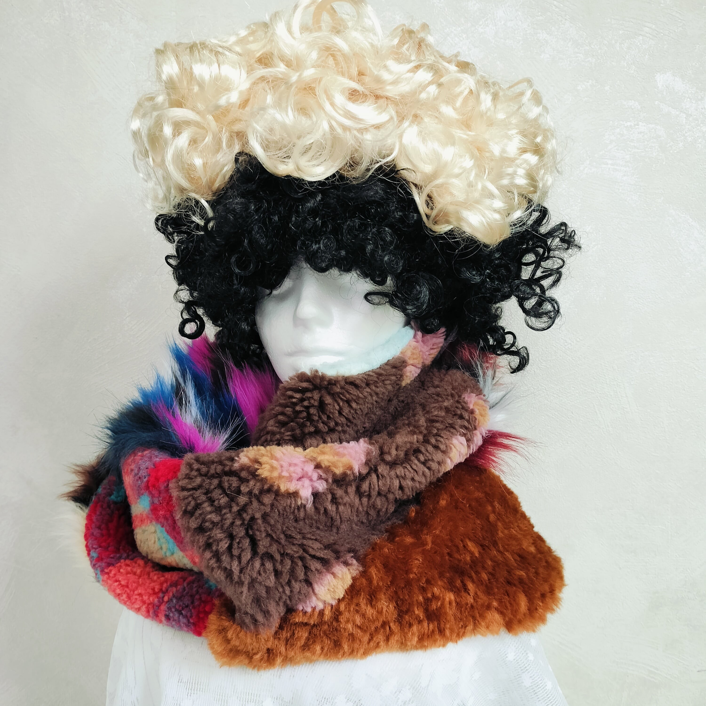フェイクファーやニットなどの異素材MIXのネックウォーマーです。