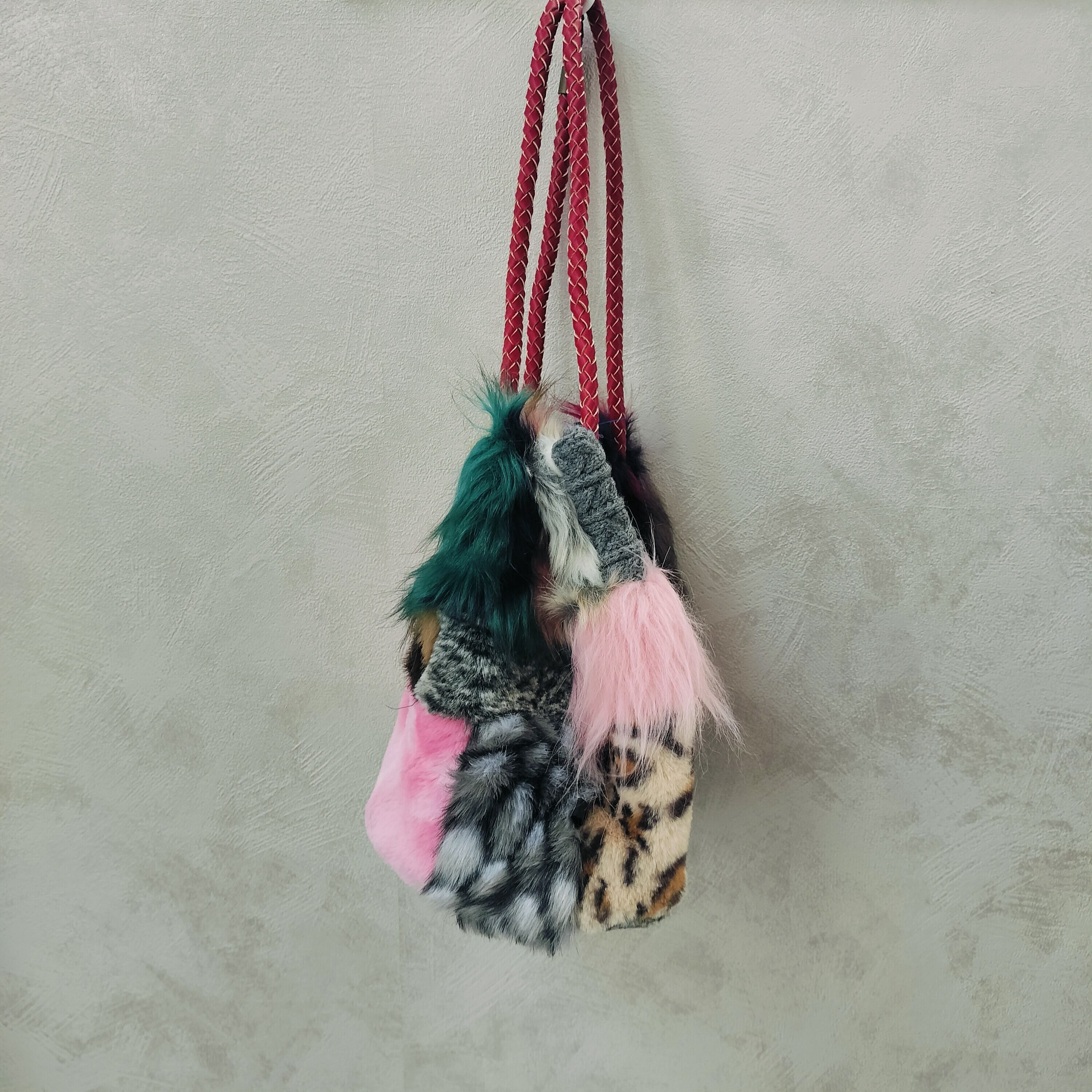 フェイクファーやニットなどの異素材MIXのバッグです。