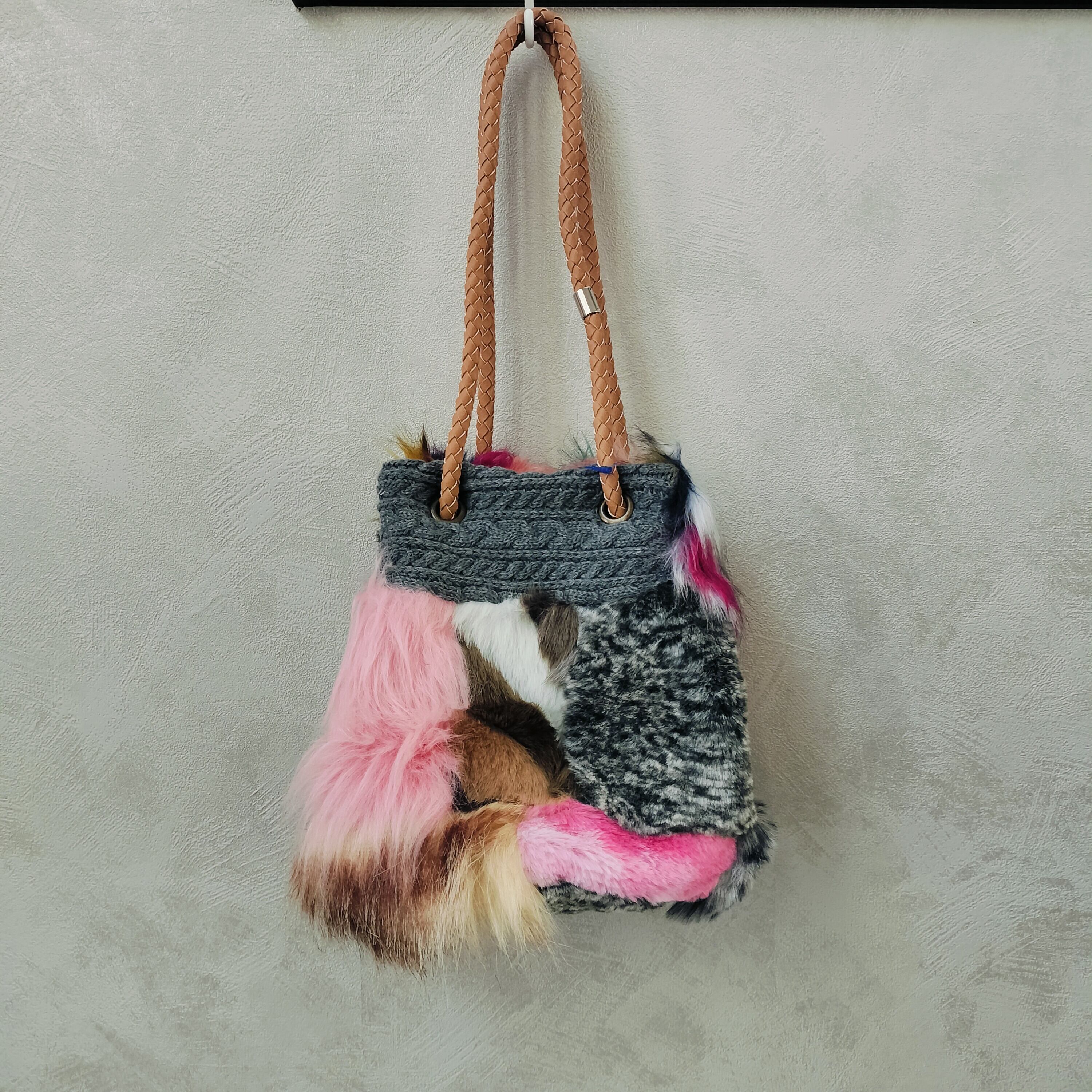 フェイクファーやニットなどの異素材MIXのバッグです。